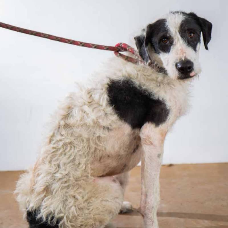 Un perrito perfecto para compañía, es tranquilo en casa, muy apegado a las personas con las que se encuentre. Convive bien con perros, pero mucho mejor si son hembras. Es un perrito que con sus bellos ojos cuentan la historia de su vida en calle, pero su gran amor por las personas.