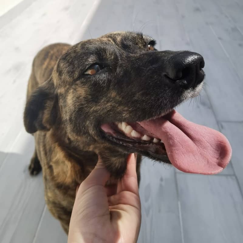 Duna formaba parte de los perritos con los que Bruno andaba en la calle, siempre buscando refugio y alimento en las construcciones pero también buscando atención y caricias de las personas. Es una perrita que le gusta estar acompañada y le gustan las caricias.