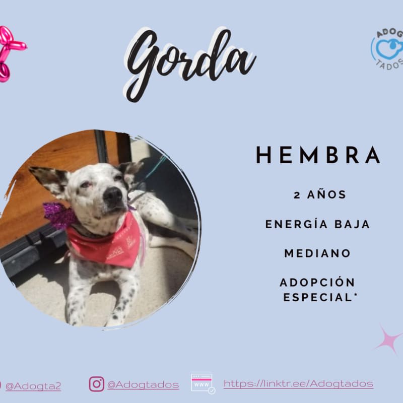 Hola, mi nombre es Gorda y soy un bonito Perro, busco una familia que me quiera mucho.